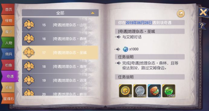 注意事项:完成奇遇15任务后,去荧光森林-莫哈德(可在冒险之书中拜访莫哈德)附近找到艾姆(触发不了就多切换几次路线)。