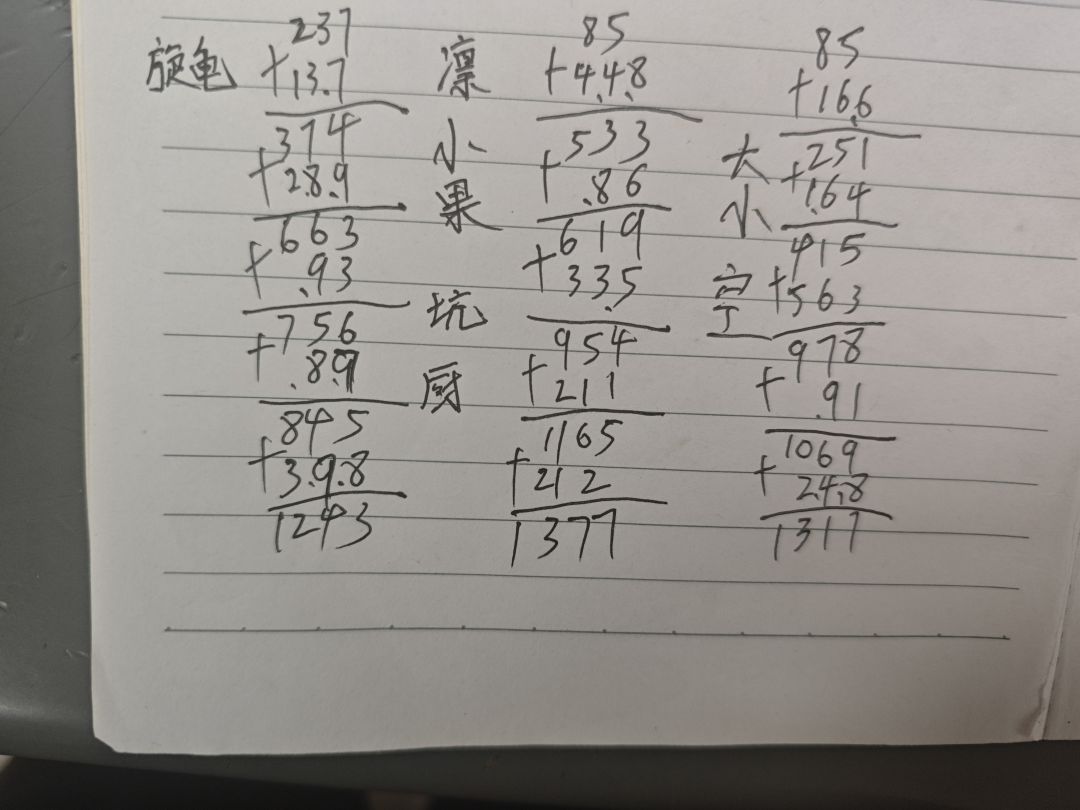 于是,无聊的我计算了这三个厨师的计算总技法差距。(仅供娱乐)
