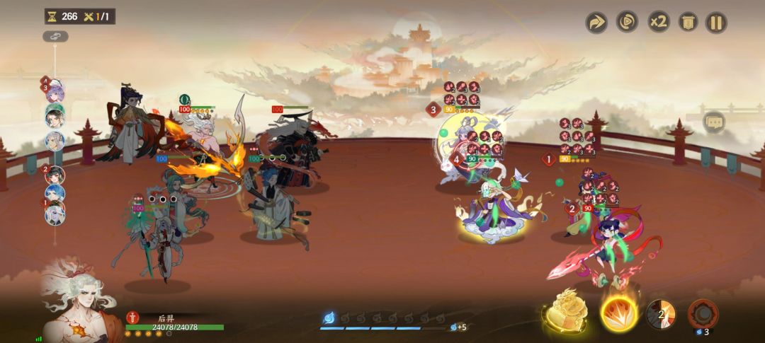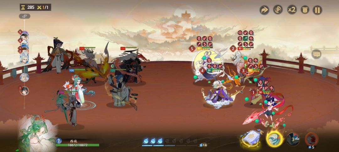 西施和白无常的配合给对面挂上满头的debuff,从而保证后羿的输出和生存。由于这个副本的关卡有回合数要求,后羿作为主输出,有大开大,不能为了省火一直普攻,虽然可以通关,但是回合数可能达不到要求。