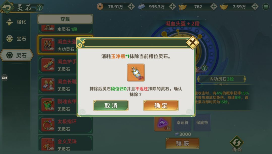 (1) 消耗1个玉净瓶抹除当前槽位灵石;