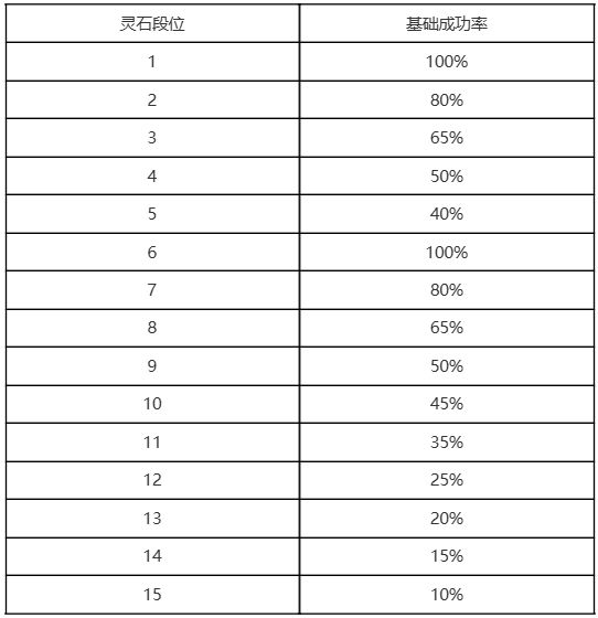(3) 灵石升段失败,装备不会破损,但灵石段位等级降为0级;