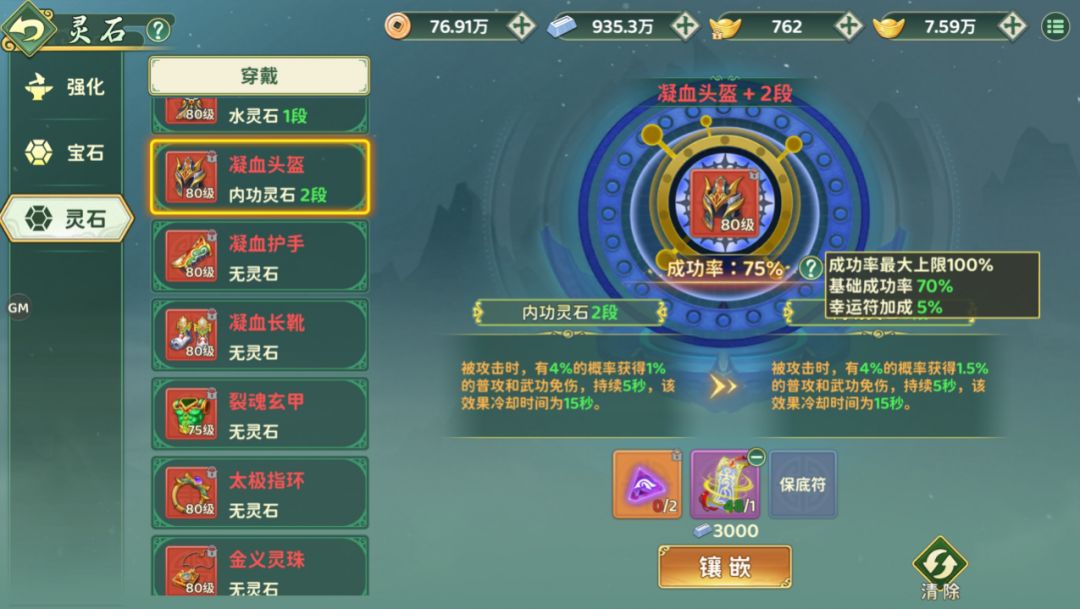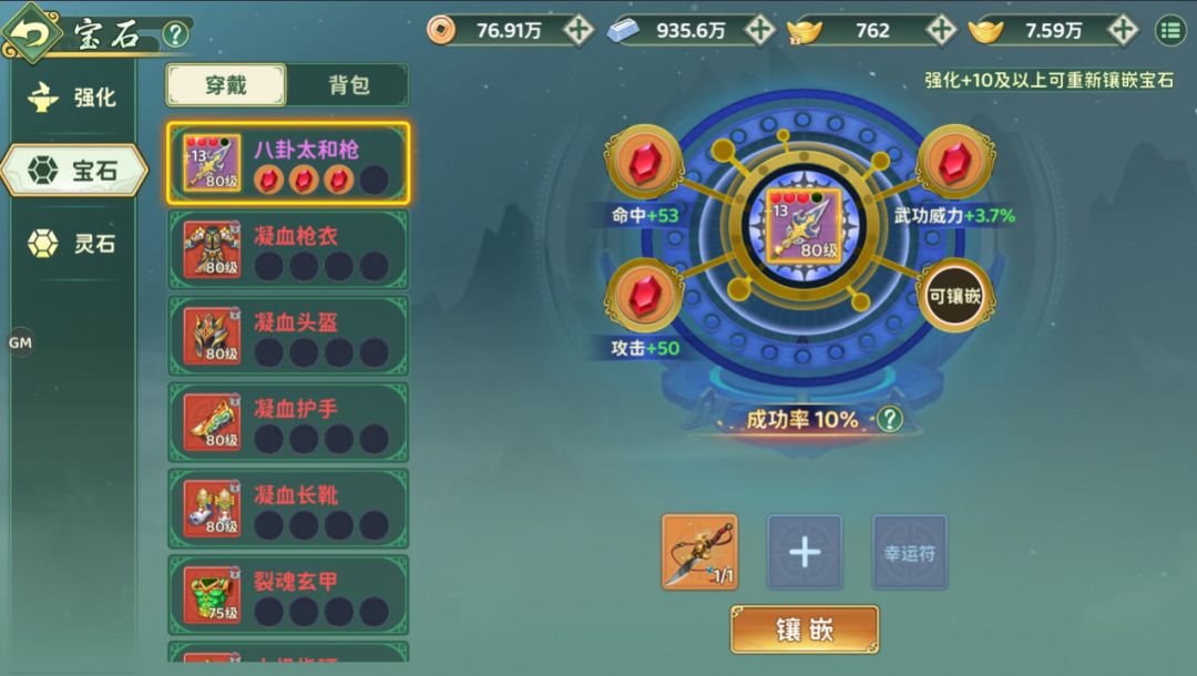 (3) 宝石镶嵌失败时,镶嵌的宝石破碎消失,装备不会受损;
