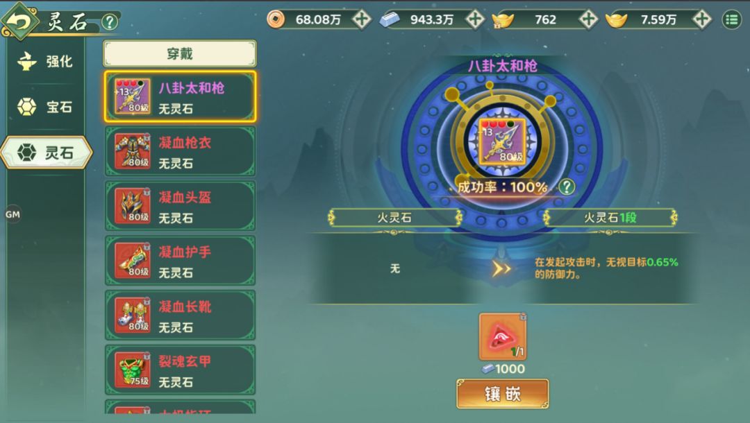 灵石镶嵌不受强化+9后无法镶嵌规则限制,可随时镶嵌