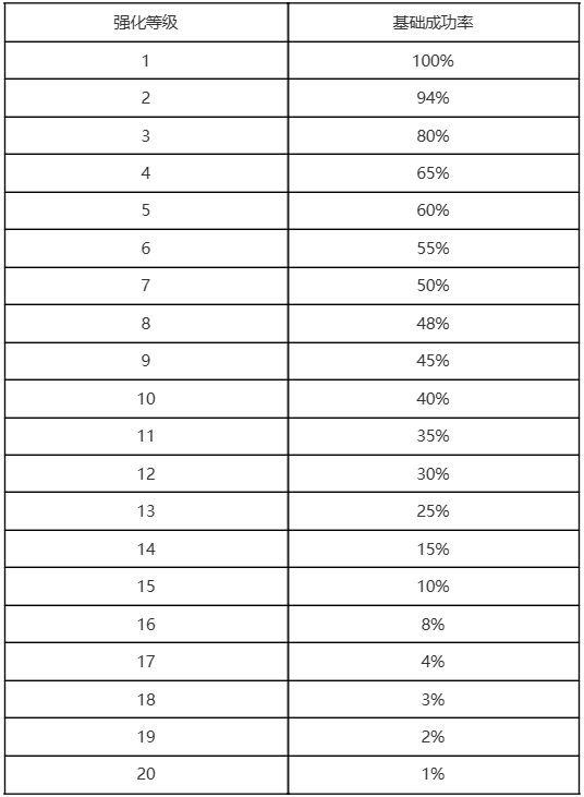 (2) 装备强化等级提升至6-8级,强化失败,装备不会破损,但强化等级降为0级;