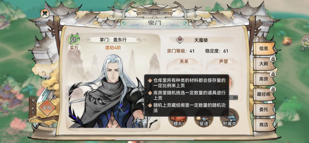 3阶材料另一个途径就是打弱中宗门附庸每天靠运气摸奖了,我是等能打过的时候,看一下有没有想要的材料,没有就直接驱逐了,等5 6天还会刷新的(我是为了刷三阶木三阶腾三阶果才这样),你们可以不用赶走,可以点进宗门看看最后一个好感度送的是什么蓝词条,好的词条要留着,比如➕效果命中的心识橙明。想玩龙人留➕反击的后发制人。