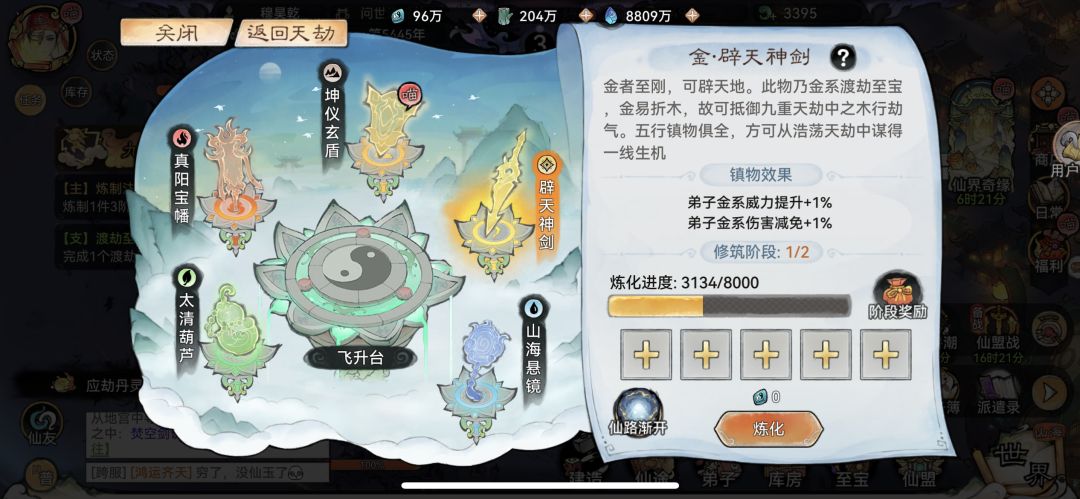 筑仙台会用到很多大量的五行材料,所以等5个修为等级拉满了,刷一部分灵石后,还是要回来继续刷灵草拿1,2阶材料 运气好可以出3阶。后面有猫猫,都是直接刷满。小台子不用急着填满,后面飞的人多了,他会降材料量,所以你包里随时备着就行。