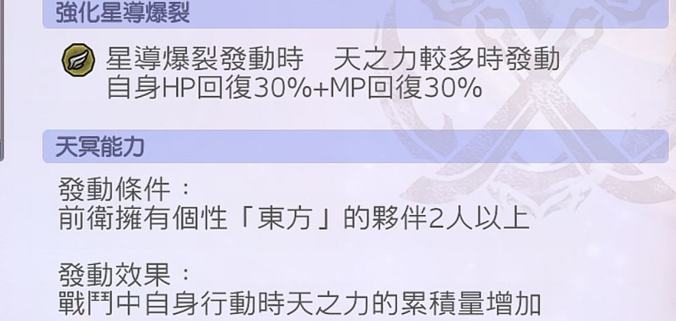 右下:天星爆时自身回复30%的HP与MP。