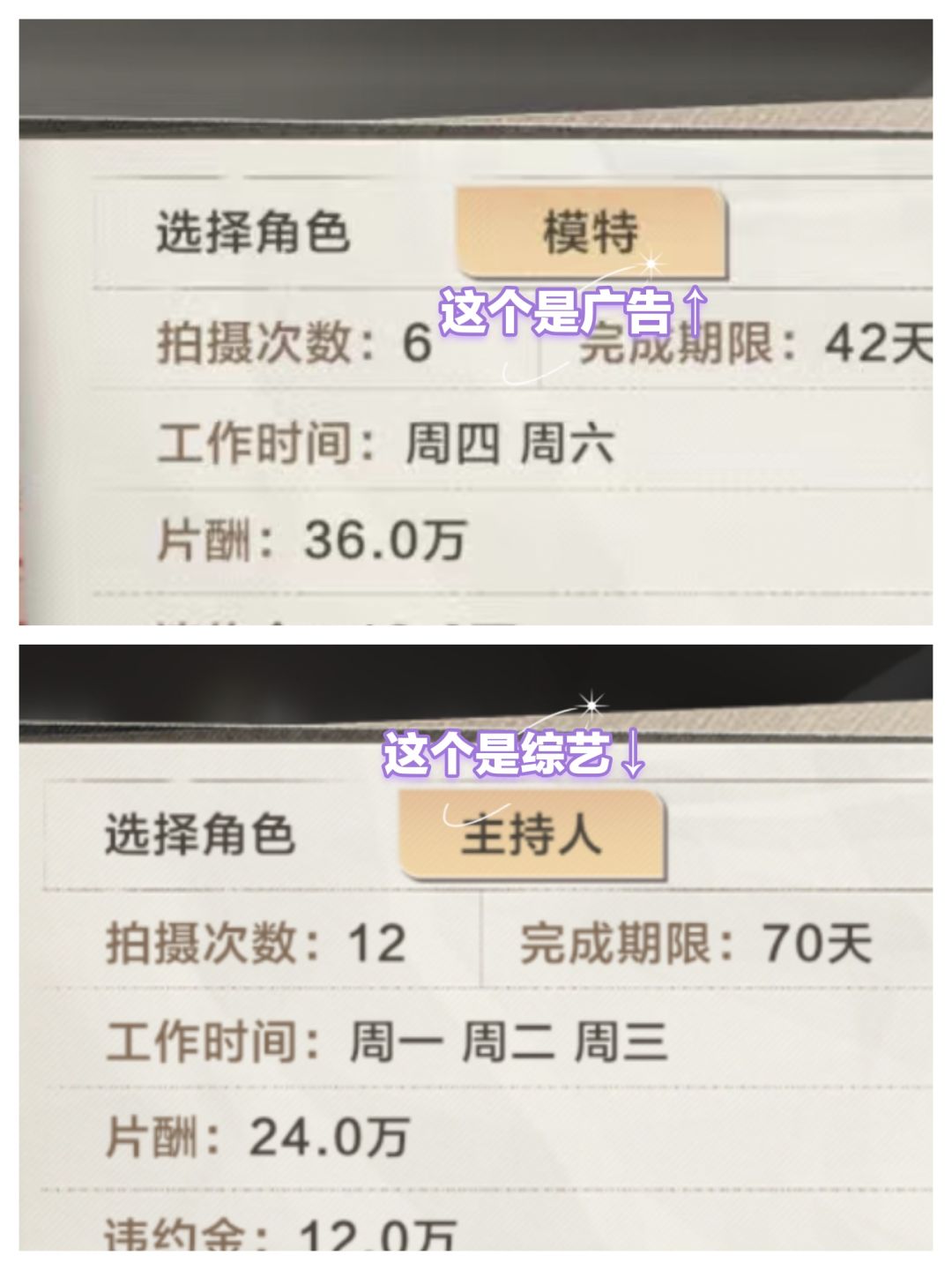 从这里开始,下面的线都要违约主线的一部电影(永眠香或者雾港蝴蝶),走歌手、综艺嘉宾、业务模特需要在一月初把钱花光,不然容易进化身资本