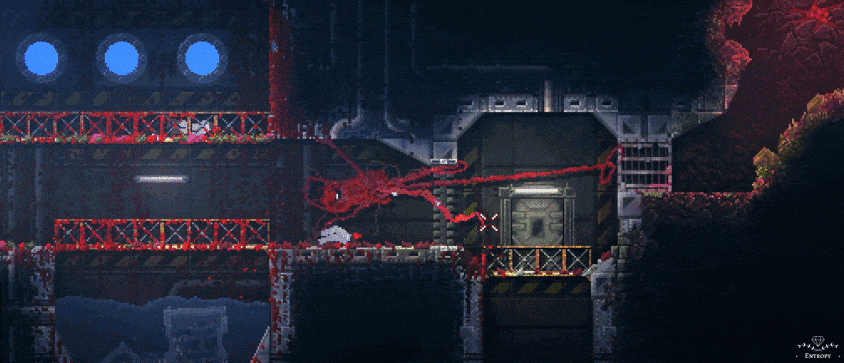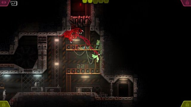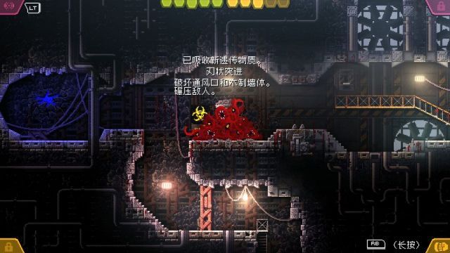在游戏的最开始,我们扮演一坨从设备里逃脱的神秘怪物,然后突破重重障碍开始杀戮之旅,最终目的是离开关押我们的实验室。