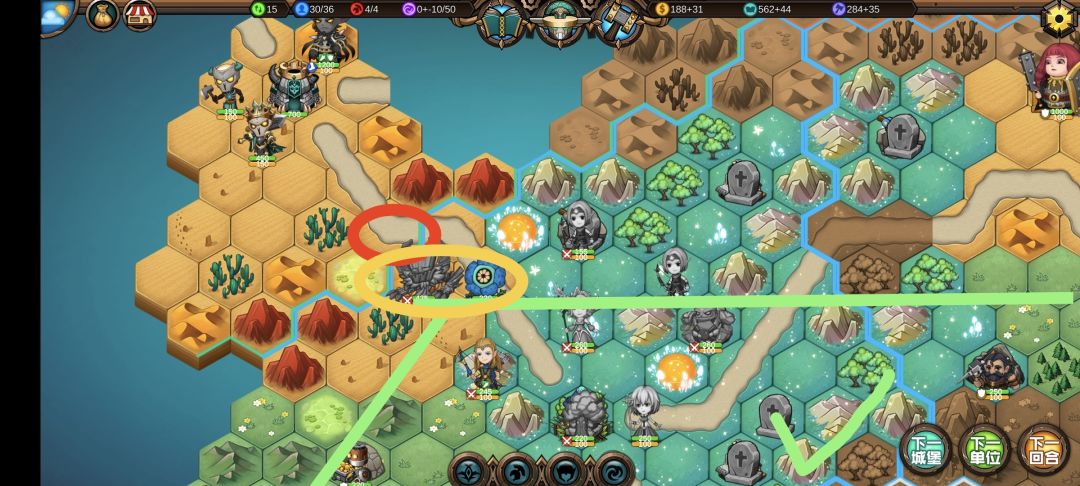 我方两个单位站在一起,站在一起很容易吃群攻魔法,让杂兵和肉盾去吃群攻魔法,这样在进攻敌人城堡时会少很多阻力