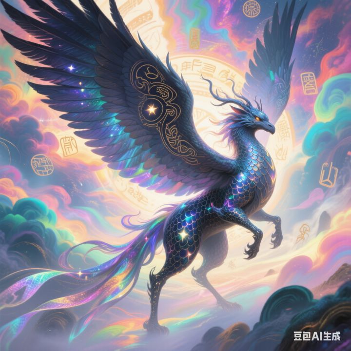 玄翊诞于昆仑流光渊,烛龙息与玄冰所化。形似麒麟覆七彩鳞,背生三翼控空间法则。万族乱战时,以赤霞翼焚魔兵、星子翼布星阵退敌,后隐蓬莱,鳞羽助修士突破,眉心时空瞳可观过往未来,危难时方现世。