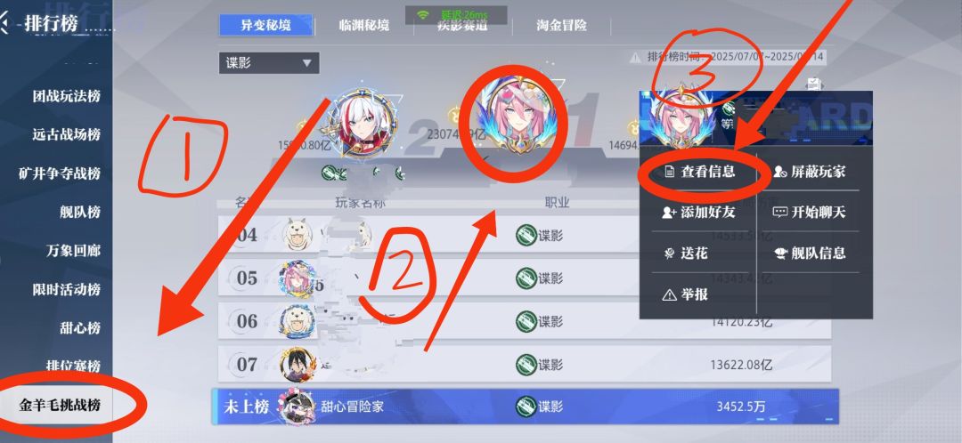 选择金羊毛排行榜(这个榜单方便查看自己的职业)