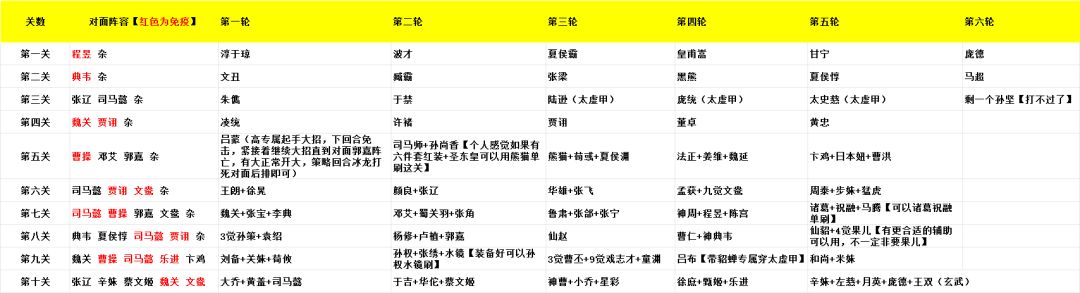 重点的是每轮的1-4关必须实现单挑。(个人感觉第五关其实装备好神器顶级的号不是没有机会单挑,黑熊,熊猫,吕蒙都是不错的单挑英雄。)