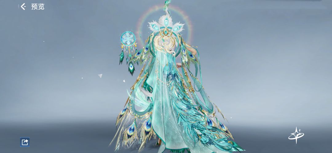 背包「雀翎昭华」仿若灵动孔雀化身。蓝绿主色调清新亮眼,包身满布精美羽毛,纹理清晰、色彩斑斓,顶部造型如孔雀首,栩栩如生,为角色添灵动优雅气质。