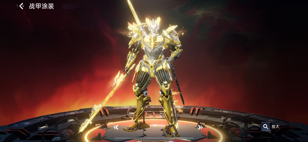 火立尊战甲涂装「耀芒金牛座」,将科技与力量完美融合。金黄色调彰显金牛座特质,硬朗流畅线条勾勒战甲,关键部位类似牛角造型,尖锐且带光芒特效。手中武器同样金黄闪耀,装备后如金牛座守护神,在战场予人无畏力量。