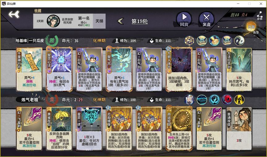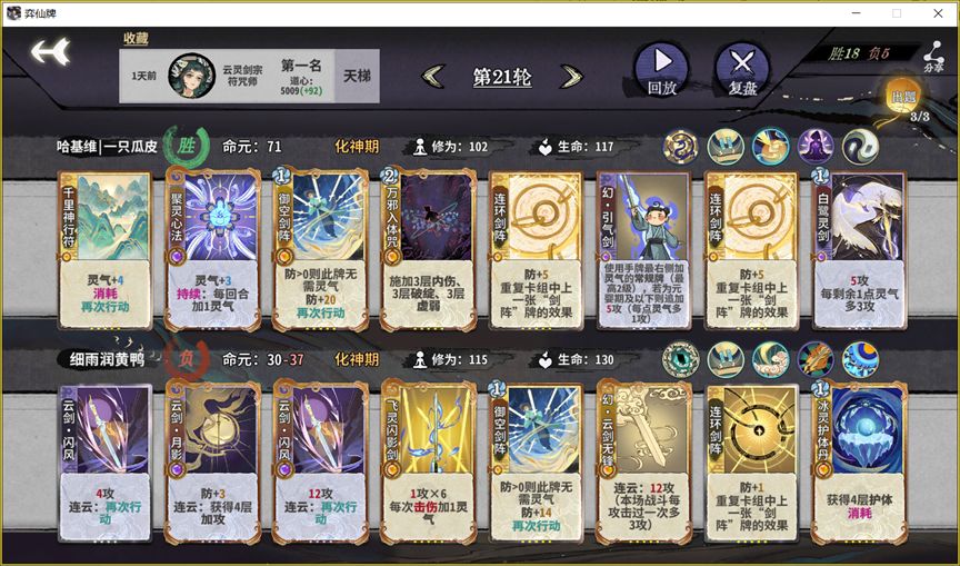 博弈:化神之后提前预判决赛对手留对策牌,决赛之前绝大多数时候不需要抢先手,质量不够利用龙鳞卖血;
