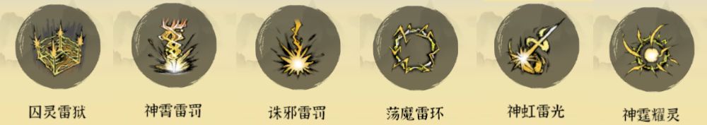 雷修:首发囚灵雷狱,搭配神霄雷罚>诛邪雷罚>荡魔雷环>神虹雷光>神霆耀灵