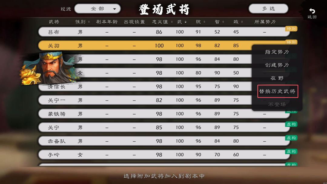 1、隆重加入可选择使用特别武将替换历史武将的功能;