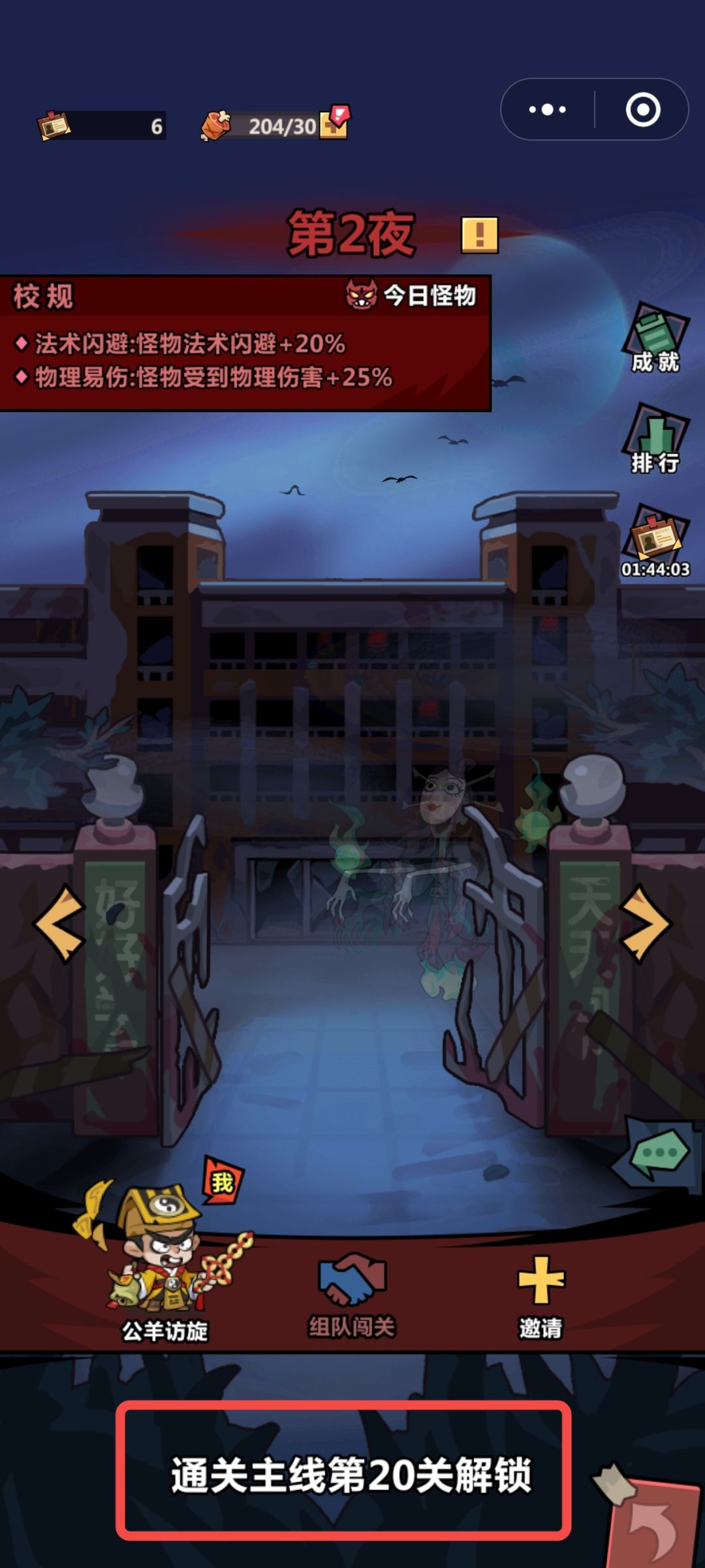 副本-诡校合宿,双人合作通关模式(可以跨区匹配)玩家可以选择邀请一位好友进行闯关其余与正常模式一样,挑战需要消耗体力和门票。每次通关可以获得奖励,并且能够完成成就任务获取成就点数,每提升一级成就等级能够获得10张招募券