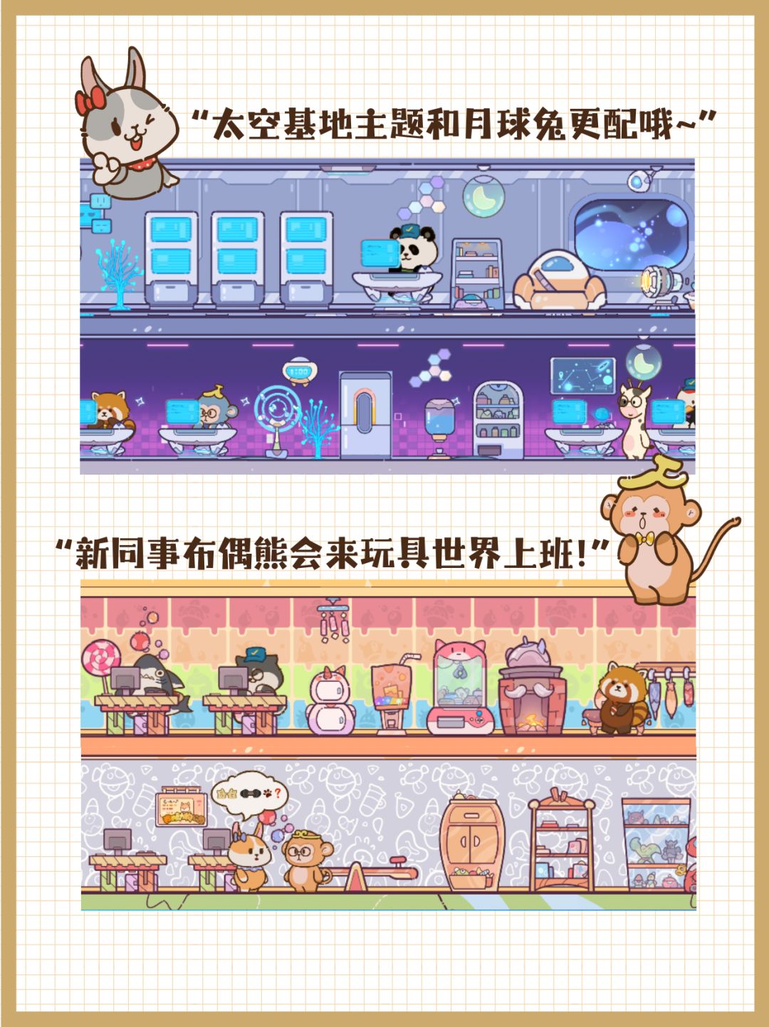 ●新增风格各异的动物员工,比如丹顶鹤、兔子、熊猫等等(正式版将有超过20+的员工哦)