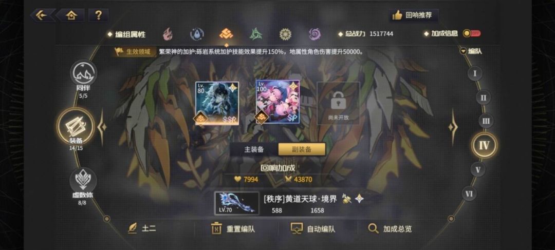 诸神回想盘选择3张忘年的旅友、2张接待员的生涯、2张阻碍重重的归途、2张天文至点的一日·落幕、1张少女的日常(攻),其中前9张回响均在地属性限定回响卡池中抽取或用奏鸣币兑换,休息可在商会240金星兑换,均可以使用箱庭奏者淬炼。