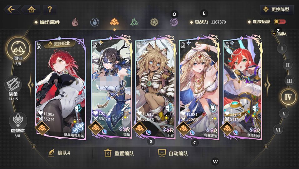 前排角色使用霍莉、帕露媞娅、希尔芙、巨门。