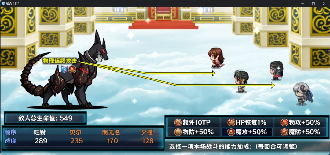 可以看到敌人最先手,而且是瞄准队伍两个脆皮,这里指挥命令就可以选物防+50%。