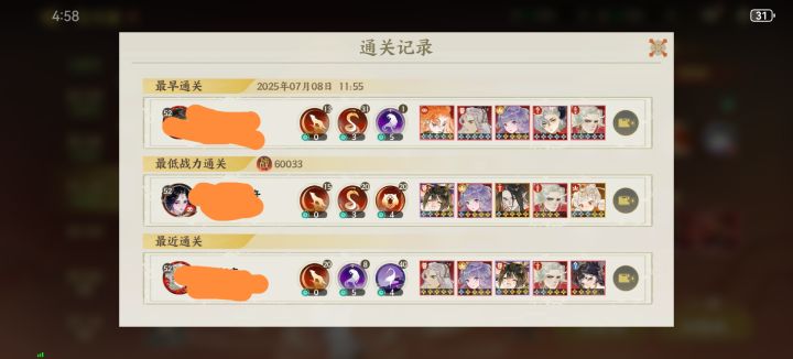 反正这个战力我用金乌打不过去,烦死了,都想弃坑了。最后拿4星后羿试一下,由于没有嬴政,后面看了下卡包,夹击姜子牙4星,用不上,最后发现紫卡貔貅也能夹击,而且7星了。