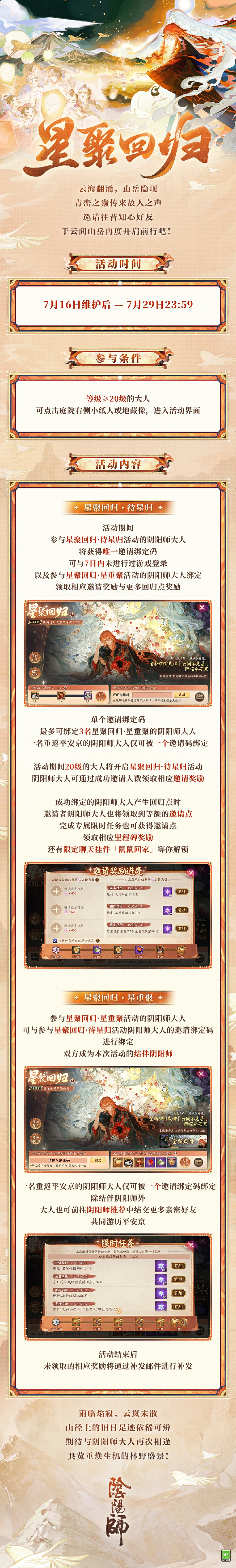 「星聚回归」活动7月16日开启!邀请好友重返平安京,共寻那被新绿覆盖的山径足迹——