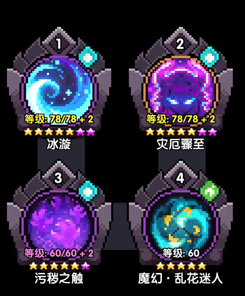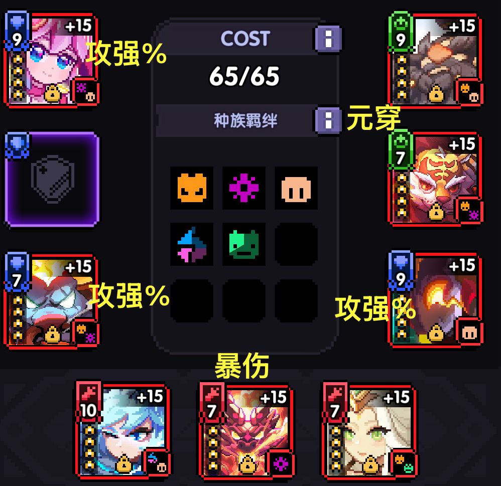 151层秘境buff抬举盾伤属性,污秽提供大量盾伤,因此将鬼卡反换为伟大增加元穿