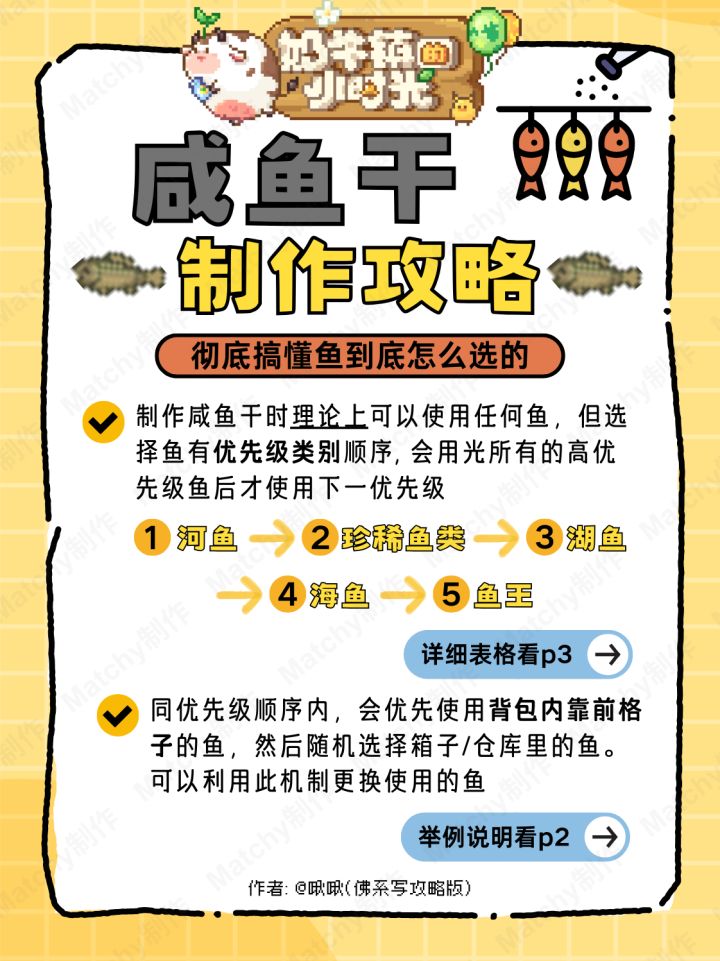 同优先级顺序内,会优先使用背包内靠前格子的鱼,然后随机选择箱子/仓库里的鱼。可以利用此机制更换使用的鱼(比如钓小镇鱼王的副产物反天刀和鲤鱼一般比鲮鱼、鲩鱼数目多得多,可以放在背包里优先用来做咸鱼干)