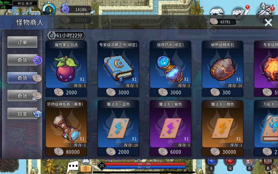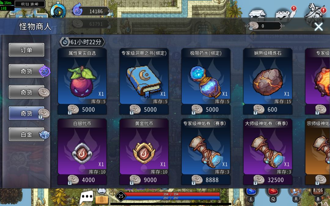 2.怪物商人购买道具(不推荐,每周一早上八点刷新)