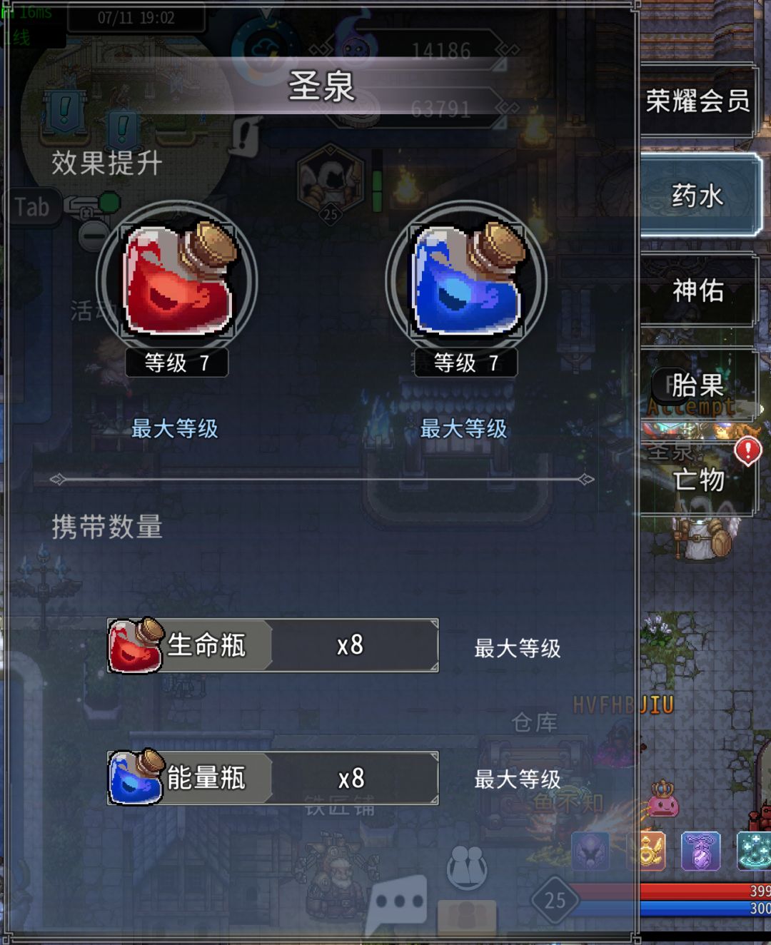 效果6级7级,携带数量7瓶8瓶需要消耗银币提升
