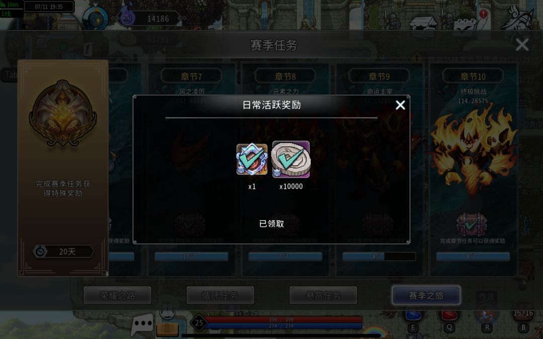 日常活跃度与周活跃度奖励(随赛季天赋等级提升)