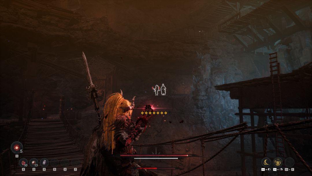 在所有可能落水、坠崖的地方,几乎都有一些困难设计,对此我的建议是若果“斗志”足够,通通射矛解决即可!比如上图的浮桥踩过几秒之后就会沉没,显然也不是一个适合战斗的场景。