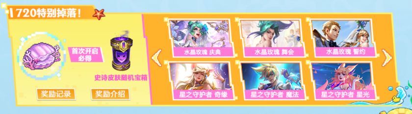 ● 剩余3个气泡内含水晶玫瑰系列皮肤、星之守护者系列皮肤等更多精彩好礼,具体奖池概率详见官网/游戏内公示。