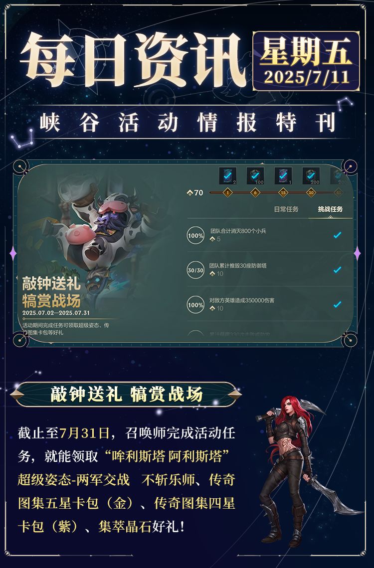 奖励:超级姿态-两军交战 不斩乐师,传奇图集五星卡包(金),集萃晶石*1000等好礼