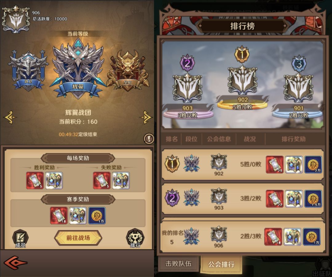 · 玩法奖励预览:可获得神话饰品自选箱、饰品抽卡券、公会币等奖励,公会段位越高奖励将会越好。
