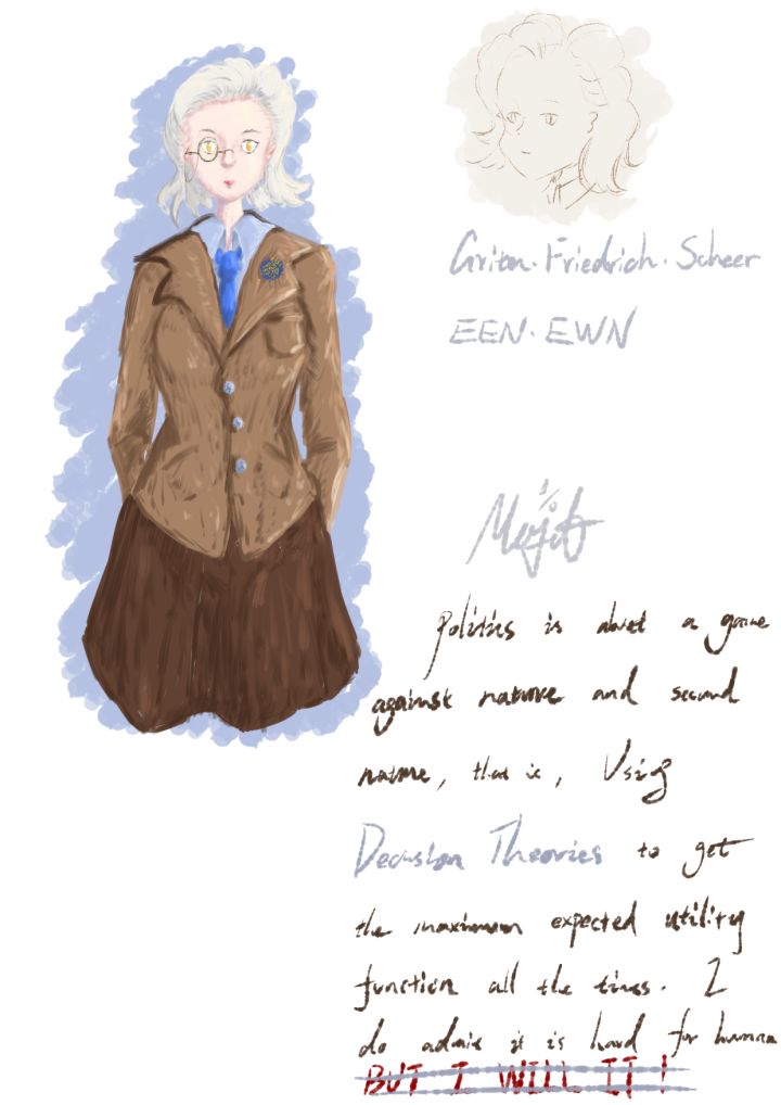 “政治就是一场对抗自然和第二自然的博弈,这意味,使用决策理论去始终寻找最大期望效用函数值。我确实承认,那对于人类而言很难,但我一定会做到。”——1968,《格利塔和组装工作人员的对谈》