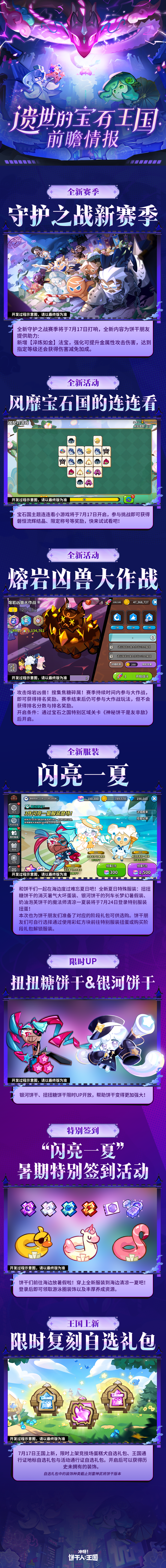 全新「守护之战新赛季」打响!伴随风靡宝石国的连连看活动登录王国,部分饼干们也换上了清凉夏装,做好迎接暑期的准备!别忘了王国上新了复刻装饰,往期错过的装饰本次也会一一亮相哦!
