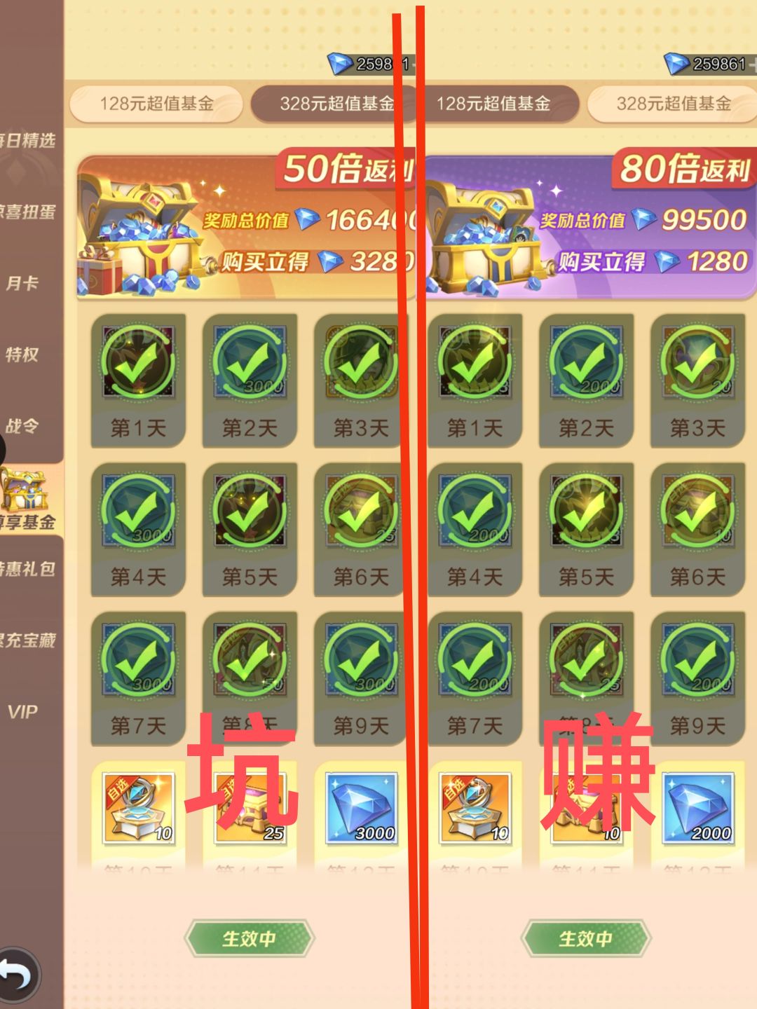 (1)这个没什么好说的推荐大家买128基金,328基金就是陷阱,看着送璇玑,其实璇玑,低氪玩不起,氪佬养了后面吃灰,前期过渡放二队只能。