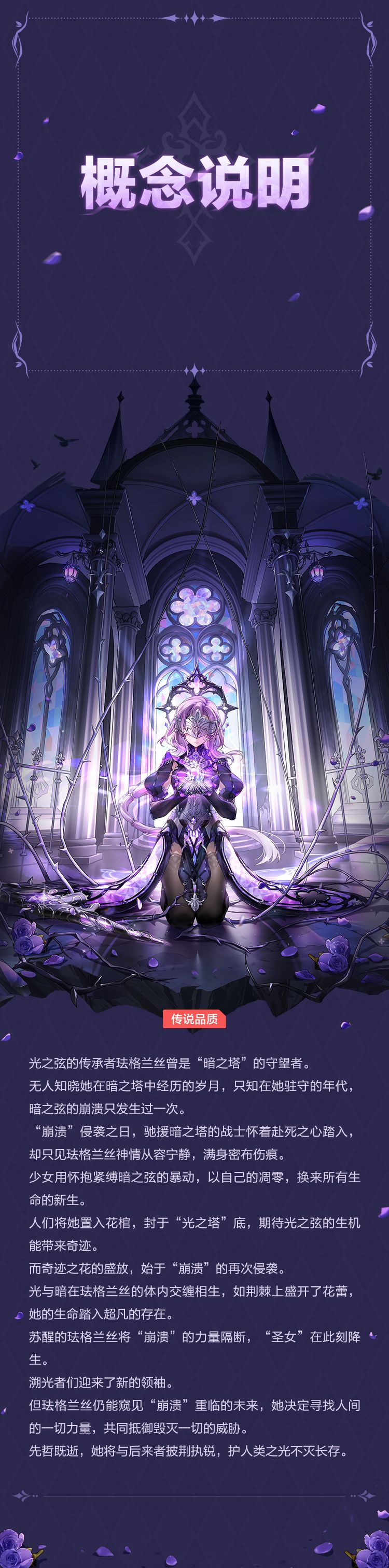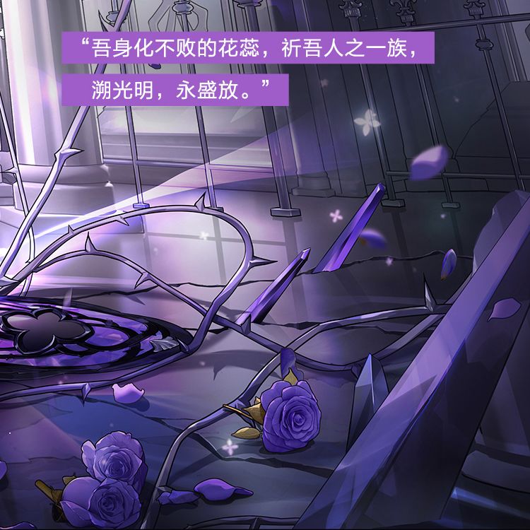 以花做冠,散落光辉,以蔓为铠,缚锁黑暗;纵然世界灾劫未尽,但她披荆执锐的身影,将会绽放不朽的希望。