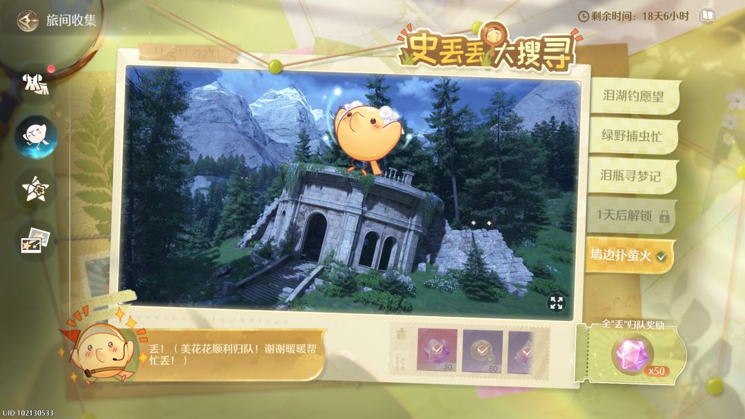 除了“丢丢也典雅”这个点位,其他的4个都能在这次的活动剧情路上找到,这次的剧情挺短的,如果没推剧情可以边推边找(如果白天看不清点位可以调成晚上,你靠近它,它就会发光)