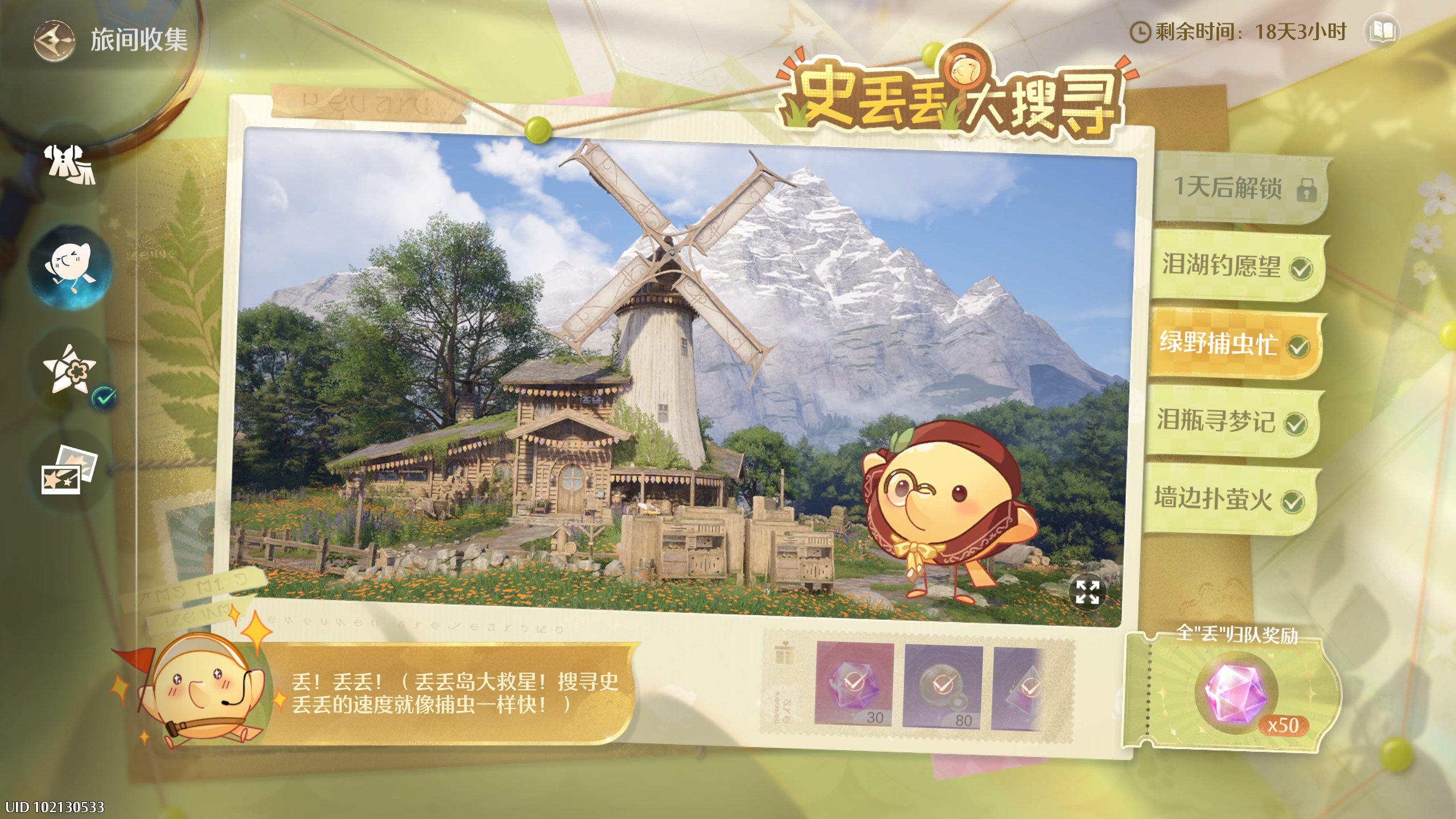 “绿野捕虫忙”。剧情的路上没有,推完主线后有一个小任务,带那个人参观一下,你可以选择两个地点,有一个就是捕虫小屋,可以顺便把这个拿了,就在风车房子后面