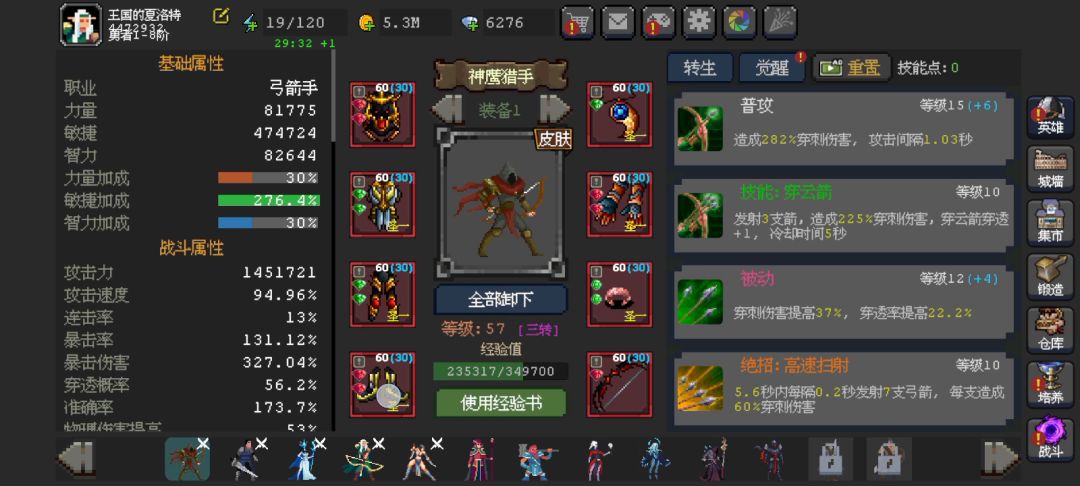 - 最后再看属性加成(属性转攻击力的那个),暴击,连击,穿透,攻速这些属性,可以在宝石,套装,旗帜,神器上找到同样加成,边际效应递减较多,我发现不少人都把这些属性看的最重,属于本末倒置了,可能是因为早期这些属性来源比较少,增伤明显,后面来源多了反倒不缺了,