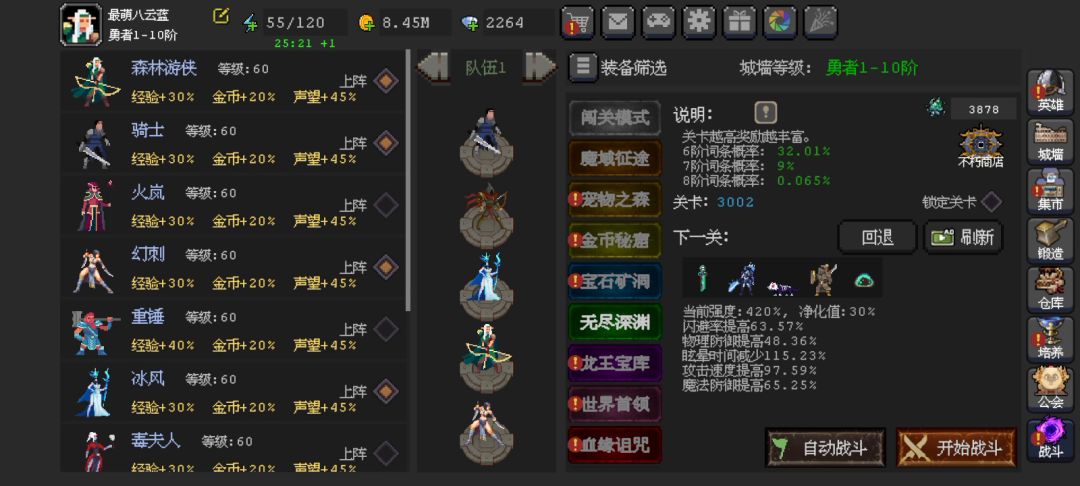 专门挑了暴击,闪避,物理防御的debuff,强度还是有的,旗帜,神器都没有,宠物洗练2s负面,2s城墙,1s小怪