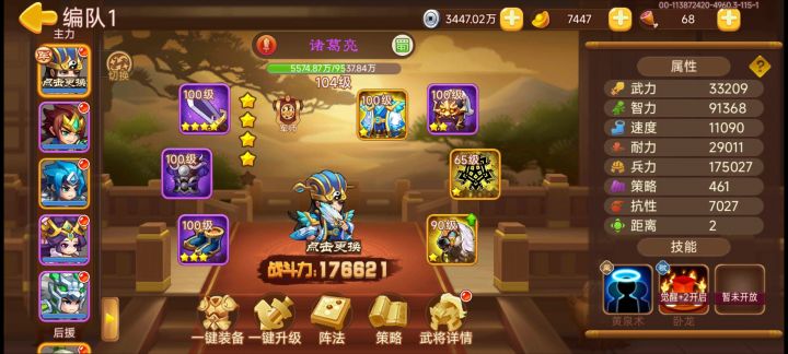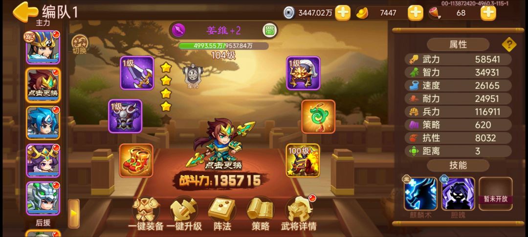 阵型配置如图,开局诸葛死了本来是感觉打不过了,但是姜维赵云马超三个一直放控制技能,和大还丹复活队友,拖到了13回合才开始输出,不要怕死,就硬拖着,然后吧张郃秒了就行了