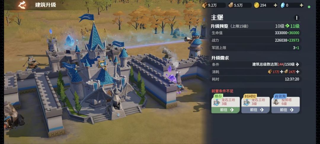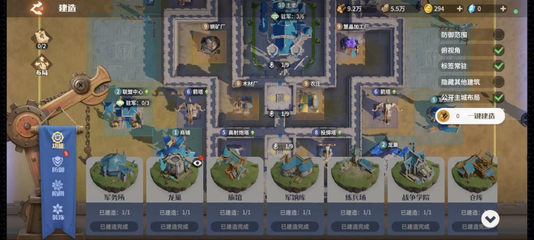 最后是攻击和防御型建筑,对于我们前期来说其实攻击和防御型建筑的作用主要为防御每个章节的黑翼来袭,作用不如功能型建筑来的实在,我们可以在主堡升级需要建筑总等级打标时进行补充升级。