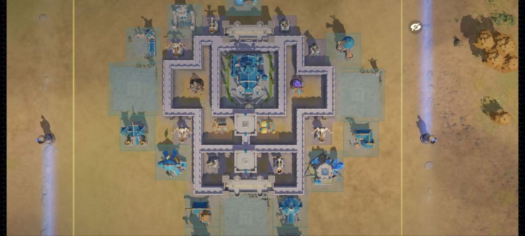 建筑的布局和安放是有很大的说法的,一个合理的布局可以让你在面对敌方进攻时做到以弱克强。这里我根据实用性给大家解析一下。当然我们龙石战争也是主打一个“千人千城”提倡自由和包容,不看重实用性主打一个整活也是可以的。首先我们要清楚的一点是,无论是防御黑翼军团还是别的领主进攻,被打破的建筑是不用重建的,但主堡被打破就意味着失败。所以我们建筑的核心点肯定是主堡。所以我比较推荐的有两种布局思路。一种是类似于系统推荐布局的四四方方的城墙在外,主城在中心,功能型建筑在主城周围。另一种是利用功能性建筑血厚的特性放在外面当肉盾,再利用城墙行程多个防线。这边给大家分享一个城建布局