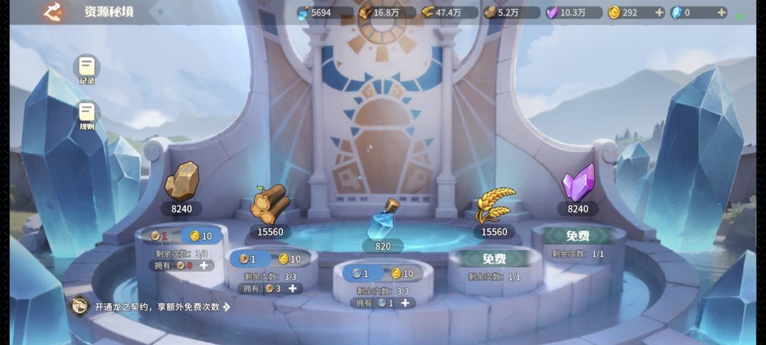 2. 每日的资源秘境免费的获取次数不要浪费。